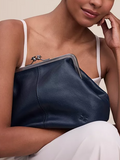 Make a bold statement with frame bag that is the perfect fusion of vintage charm and modern sophistication. Crafted from full-grain leather, its convenient size and structured silhouette make it elegant and eye-catching. The classic kiss-lock closure adorned with delicate rosebud clasps offers a romantic, nostalgic touch while keeping your essentials secure. Whether you're dressing up or adding flair to everyday wear, this timeless piece carries it all in unmistakable style.